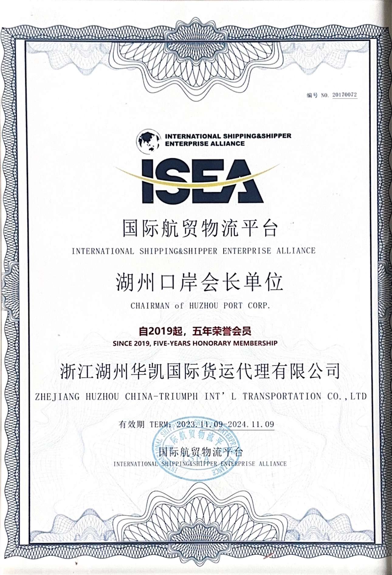 (國(guó)際航運(yùn)企業(yè)聯(lián)盟)執(zhí)行副會(huì)長(zhǎng)單位/湖州口岸會(huì)長(zhǎng)單位